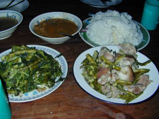 3月1日(土) 雨。暴風雨となる。明日より水底が不在。私はあさってより不在となるので部屋の掃除をする。昨日のカレーにほうれん草とトマト缶とチーズを入れて食べる。 食:14時、カレー、納豆。 食:19時、カレージャッフル。 食:22時、カレー、納豆。 3月2日(日) 晴。水底、早朝醤油かけうどんを食べて外出。私は午前中に新宿まで出て資材を購入。見知らぬ人に人違いを受ける。久しぶりで、元気にしていたかと、某氏は元気かと言う。私はその人にも某氏にも覚えがないのであなたがどこのどなたか知らないと言う。それでもしばらく自分が判らないかと言うので、判らないと言い続けるとあきらめて行った。 もちろん、私は自分の名前を名乗らないし、向こうも私の名前は言わない。町には怪しい人が多い。朝、出かける前にご飯を炊いて、残っていたカレーを食べる。午後、キャベツとさつま揚げと葱で焼きそばをつくり、豆腐と油揚げと白菜と小松菜で湯豆腐をつくって、ビールとともに大量の残り物の一部を消費し、しばらく寝る。ご飯の残りは梅干し海苔おむすびとする。翌早朝に外出。 購入:焼きそば麺。 食:9時、カレー。 食:14時、焼きそば、湯豆腐、ビール、おにぎり。 3月3日(月) 晴れ。フィリピンへ。早朝夏みかんを食べる。実家から届いたもので最初は酸がきつくて食べられたものではなかったが、2カ月も経ち、酸がとれて甘味がでてきた。香りもよく美味。車で外出。午前4時。成田へ。空港で時間を待ちながらおにぎりを食べる。フィリピン航空にてマニラへ。機内食は菜めしとすき焼きに、筍、人参、玉葱が入ったもの、そばとパンとチョコレートまんじゅう。どうして最近はどの航空会社もそばを取り入れるのだろうか。オレンジジュースやお茶や紅茶を飲む。マニラでG氏が迎えてくれる。G氏は北部ルソンの出身で私と同じ年である。チャーターした車で北部ルソンの町ソラノへ向かう。夕食は早めで途中のご飯屋さんにて、豚肉、焼き魚、豚スープ、ゴーヤと卵炒めなどを同乗の4人でシェアして食べる。唐辛子に柑橘のカラマンシーをかけてそれに焼き魚をつけて食べる。マンゴーとバナナを食べる。マンゴーは今が旬で非常においしい。さらに夜、途中の店で、餅菓子やかるかん、バナナの皮でつつんだ蒸し米のお菓子とネスカフェをとり、深夜ホテルに到着。寝る。 食:7時、おにぎり。 食:11時、機内食。 食:17時、ご飯、豚肉、焼魚、ゴーヤと卵の炒め物、豚スープ、マンゴー、バナナ。 食:20時、ネスカフェ、餅菓子、かるかん、蒸し米菓子。 3月4日(火) ソラノから山へ。朝、ホテルでバイキングの朝食。ご飯、目玉焼き、ハム、豚肉などを食べる。スイカとパパイヤを食べる。ネスカフェを飲む。午前中、ソラノの事務所で打ち合わせをして、昼となる。昼は、ソラノのオランダレストランへ行く。そこで、フィリピン料理を食べる。ご飯と揚げ豚と野菜を煮たもの。店のオーナーの年をとったオランダ人がフレンドリーである。午後、長距離バスを乗り継いで山の入口のアローラに到着。そこで、山に住むJ氏に再会し、J氏の兄が運転するぼろぼろのジープで山へと向かう。 夕食は、小豆を少し大きくしたような直訳すると鳩豆と鰯を醤油などで煮たもの。豆がおいしい。 星がきれいだった。 食:8時、ご飯、豚肉、ハム、目玉焼き、スイカ、パパイヤ、ネスカフェ。 食:12時、ご飯、揚げ豚肉、野菜煮、マンゴージュース。 食:20時、ご飯、豆魚スープ。 3月5日(水) 山の1泊目の朝。コンビーフをにんにくと醤油で炒めた物と昨日の豆煮スープ。苗栽培場を建設する作業の撮影。昼は、コンビーフとインスタントラーメンでご飯を食べる。夜は、大根葉のようなものを味噌で煮る。味噌は日本からのおみやげ。味噌の味は違和感がないようである。醤油を使うからかも知れない。昨日の豆スープ、昼のラーメン、それに何かとろりとした野菜のおかずでご飯を食べる。途中さつま芋やバナナやザボンも食べている。風呂に入らず2日目。そろそろつらい。 食:7時、ご飯、コンビーフ炒め、豆煮スープ。 食:12時、ご飯、インスタントラーメン。 食:20時、ご飯、菜っぱの味噌汁煮、豆スープ、インスタントラーメン、野菜のおかず。 3月6日(木) 山の2泊目の朝。昨日の残りでご飯を食べる。作業を撮影。昼、バナナの花をにんにく醤油で炒めたものとご飯。夜は豚足のスープ。煮た豚足といんげんを炒めたもの、豚足の醤油、酢、砂糖、にんにく煮のアドボ、いんげんと菜っぱの味噌煮。ごちそうである。本日で最後。風呂に入らず3日目。もうどうでもいい。ご飯がおいしいのは嬉しいことである。 その頃日本の水底の元に届いた宅配。 宅配:葉玉葱、じゃが芋、小松菜、にら、えのき、キャベツ、ほうれん草、レタス、つぼみ菜、みかん、豆腐、油揚げ、納豆、鶏もも 食:7時、ご飯、菜っぱの味噌汁煮、野菜のおかず。 食:12時、ご飯、バナナの花のにんにく醤油炒め、コンビーフ。 食:20時、ご飯、豚足ア
