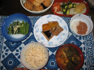 5月18日(日) 曇りのち雨、肌寒い。晴れ間のない日が続く。洗濯物がたまってしまい、とうとう洗濯してしまう。夜、雨が降る。自宅で仕事。 水底の誕生日。昼はカレー。夜はカレーときつねうどん。水底のリクエストに応える。 うどんは、煮干しでだしをとり、薄口醤油と塩で味付けしたものに、油ぬきした油揚げと小葱を刻む。うどんはいつもの冷凍うどん。カレーは昨日の。昼も夜も納豆を食べる。昼はチーズも食べる。納豆やチーズ、あるいはヨーグルトのような発酵食品はカレーライスとよく合う食材である。海苔もよい。卵もよい。コールスローはサイドメニューであり、トッピングとは言えない。レーズンやナッツ類もおいしい。本日のご飯は麦ご飯。7分づきぐらいの米2合に市販の7分づき押し麦を1合入れる。こうなるとずいぶんつぶつぶする。熱々の炊きたてご飯というのもおいしいが、カレーの時には、炊いて1時間ほど経った少しぬるいご飯がまたよく似合う。 昨日のご飯はだったんそば茶がらご飯。夕食前になるがロールケーキも食べる。 口福でありますように。 食:14時、カレーライス、チーズ、納豆。 食:23時、カレーライス、揚げのせうどん、納豆、ロールケーキ。 5月19日(月) 東京は雨、秋田は曇り時々晴れ。本日より東北出張。3カ所の田植えを撮影、取材するのだ。早朝高速バスに乗り羽田へ。羽田でミックスサンドイッチをかじり、羽田から1時間で秋田空港へ。レンタカーを借りて大潟村に向かう。高速道路が通っていてとても近くなった。飛行機は意外と満席、ツアー客が多い。レンタカーも盛況。しかし、秋田道は私のための道、状態であった。大潟村の田植えは規模が大きい。代かきはキャタピラで動く乗用半分手作りトラクターで大胆かつ繊細に。田植えは8条植えで片道に2分往復すると5分以上かかる。苗箱は数百をすぎて数千の単位。15町歩の田んぼである。 昼、大潟村の農産物直売店付属キッチンで大潟村味噌使用味噌ラーメンを食べる。麺は市販の生麺、具は、チャーシューともやしとメンマと葱とわかめ。味は淡泊。食べやすい感じ。 夜は、刺身や手作り中華そばやわらびの酢の物や新生姜などを食べつつ、ビールを飲む。 食:7時、サンドイッチ、お茶。 食:14時、味噌ラーメン。 食:19時、ご飯、刺身、わらびの酢漬け、新生姜漬け、漬物、手作り中華そば、アスパラとスナップえんどうのサラダ、ビールなどなど。 5月20日(火) 秋田は晴れ。東京は相変わらずの悪天候らしい。朝、塩鮭や昨日の残りなどでご飯を食べる。山本町の生産者のところへ。ここは紙マルチで田植えをする。午前中取材をして、昼ご飯をごちそうになる。カレーライス、きゅうりの浅漬けなど。しばらく話をして、温泉に入り、大潟村に戻る。大潟村で再度撮影をして、夜はすき焼きとなる。材料を農協に買いに行き、用意しておく。牛肉、焼き豆腐、糸蒟蒻、生椎茸、葱、春菊、白菜、うどんを購入。丁字麩という滋賀県の麩をたくさん入れて食べる。この麩はおいしいので、残りをもらって帰ることにした。豆もやしのナムル、昨日の刺身の残りを漬けにして、それをにんにく、醤油、みりんと葱で炒めたものを作って食べる。 食:8時、ご飯、塩鮭、漬物各種。 食:12時、カレーライス、漬物各種。 食:19時、すき焼き、ご飯、ナムル、漬けの中華風葱炒め、スナップえんどう、ビール。 5月21日(水) 秋田、山形北部は晴れ。東京は少し雨。朝、ご飯を食べてから大潟村を出発。山形県遊佐町へ行く。昼をはさんで取材。その後、秋田空港へ向かい、東京へ夜戻る。 朝、塩鮭を焼き、さつま揚げを焼いて、漬物や納豆とご飯を食べる。昼は、遊佐の生産者のところでごちそうになる。かすべの煮付け、わらびのサラダ、アスパラ、スナップえんどう、玄米ご飯、味噌汁など。夕方、空港で稲庭そばを食べる。帰宅後、ご飯、味噌汁、納豆、水底手作りの鰺の開きを食べて一段落。味噌汁は大根、ごぼう、人参など。明日の出張に備える。 もらい物:丁字麩。 購入:納豆、かぼちゃパイ。 食:7時、ご飯、塩鮭、さつま揚げ、漬物各種、納豆。 食:12時、ご飯、味噌汁、かすべの煮付け、わらびサラダ、アスパラ、スナップえんどう。 食:18時、稲庭うどん。 食:24時、ご飯、味噌汁、納豆、鰺の開き。 5月22日(木) 曇り。茨城県八郷町へ行く。昼前に電車で出発。チーズジャッフルをつくって食べて外出。上野駅でサンドイッチと赤飯おにぎりを出発直前に買い求め乗車。石岡駅で降りる。合鴨農場といちご生産者を訪ねる。その後、温泉に入り、生産者らと交流。いちご生産者は、8、9年ほど前に、以前の職場関係で取材した方であった。お互いに忘れていて、会ってしばらくしてから私がようやく思い出す。その頃生まれていなかった子どもが大きくなっている。月日の流れ。無農薬のいちごはもう終わり際だったが、おいしかった。1粒盗み食い。夜は、今回招いてくれた方のところに宿泊。犬が5匹いる。みな、縁があ