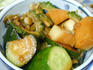 2003年8月1日(金) 曇りと晴れ。そろそろ梅雨明けか。部屋の掃除をし、プールに行く。先月発売されたハリーポッターの第5巻、英語版なのでそうすぐには売り切れまいと思っていたら入手できなかった。ようやく本日入手する。 昼、水底がうどんを茹でる。昨日とは違い、乾麺。これに、鶏ハムのゆで汁といりこでだしつゆをつくり、温うどんとして食べる。もちろんいなり寿司も食べる。昨日は、食べることに一生懸命だったのだが、本日余裕が出る。いなり寿司の中には細かく刻んだだしがらの昆布と椎茸、ごまが入っていた。いなり寿司終了。次はいつだろう。 水底が血が足りないというので、夜は豚レバーを炒める。私があまり得意でないので、刻んだレバーを醤油、にんにく、生姜、ごま油、日本酒に軽く漬け込む。キャベツ、玉葱、ししとうを炒めて、レバーを炒めたものと合わせる。最後に軽くお好みソースを入れる。なかなかおいしい。これとご飯。枝豆を茹でる。水底、まぐろフレーク缶を開ける。飯のおかずばかり。 夜中すいかを食べる。ふふふ。夏だ。 購入:小松菜、生姜。 食:14時、いなり寿司、冷や奴、鶏ハム入り温うどん。 食:23時、ご飯、豚レバー野菜炒め、野菜天ぷら、まぐろフレーク缶。 8月2日(土) 晴れ。梅雨明け。昼、お茶漬けですます。我が家の梅干しがうまい。インドネシア・ジャワ島、ヌガラ州の竹楽器ジェゴクの定期演奏会に行く。今年は新曲が多かった。楽しい。またバリに行きたい。夜はラーメン屋に行き、ラーメン、餃子、ご飯の定食を食べる。 食:14時、お茶漬け。 食:23時、ラーメン、餃子、ご飯。 8月3日(日) 晴れ。昼はそうめん、昨日の残り。夜は鶏もも肉をグリルで焼鳥にする。おくらを刻み、かつおぶしと合わせる。あさりの味噌汁をこしらえる。野菜を焼く。なすとキャベツとピーマン。 購入:あさり、葱、牛乳、ピーマン、納豆。 食:14時、そうめん、レバ野菜炒め、まぐろフレーク缶残り。 食:22時、ご飯、焼鳥、焼き野菜、あさりの味噌汁、おかかおくら。 8月4日(月) 曇り。横浜で会議。朝はパンを食べて出る。昼はホテルのお弁当。夜は交流会で少しだけ中華料理をつまみ、ケーキを食べる。帰宅後、ご飯と納豆を食べる。 食:7時、パン。 食:12時、お弁当。 食:18時、ジュース、ウーロン茶、中華料理少々、ケーキ。 食:22時、ご飯、納豆、梅干し、ふりかけ。 8月5日(火) 曇りのち土砂降り。横浜で会議。多摩で花火大会があるため、電車が混むことを予想し、ルートを迂回して帰る。ちょうど花火大会の頃に土砂降りの雨となる。迂回した駅につくと花火をやっている。土砂降りなのに。家に帰り着くと、ちょうど、会場方面からパトカーなどのサイレンが聞こえる。ああ、中止したのだなと思ったが、ヘリコプターも飛び回っている。多摩川が増水し、中州に花火職人20人ぐらいが取り残されたという。主催者は、雨が小降りになったので開催したというがずっと大雨が降っていた。消防からは中止要請も出ていたという。幸いけが人などはなかったが、安全意識の低さに驚かされる。 朝は抜き、昼はホテルの中華風お弁当。帰宅後、水底がコロッケをこしらえていたので、これとご飯をむしゃりむしゃりと食べる。 食:12時、お弁当。 食:20時、ご飯、コロッケ、納豆、キャベツの千切り、すいか。 8月6日(水) 曇り。広島原爆の日。本日も横浜で会議。昼、水底と待ち合わせし、久しぶりに中華街でご飯を食べる。とは言っても、観光客向けという感じの店ではなく、町の中華料理屋さんという感じで地元の人がよく食べる店。店の人もお客さんも顔なじみで、身近なことを話していたりする。ここの巻揚とサンマー麺を食べる。野菜がたっぷり入っていて麺は細身でおいしい。巻揚は、にくやきのこや野菜を豚の網脂で巻いて揚げた物。ボリュームがある。美味。夜、プールに行く。カップ麺とご飯を食べて済ます。 食:8時、立ち食いそば。 食:13時、サンマー麺、巻揚。 食:23時、カップ麺、ご飯。 8月7日(木) 曇り。終日読書。ハリー・ポッターの5巻を読み終える。年内には読み終わろうと思っていたが、1週間で読んでしまった。もちろん、分からない単語で、主ストーリーと関係ないものは読み飛ばしているのだが、800頁近くをこんなに早く読めるとは思わなかった。習うより慣れろとはよく言ったもの。 昼、水底がうどんを茹でる。薬味は生姜、しそ、みょうが、それに焼きなす。 夜、昨日のコロッケを食べる。ご飯を炊き、めざしを焼き、ほうれん草のおひたしをこしらえ、冷や奴を食べる。水底が仕込んだゴーヤと大根ときゅうりの中華風漬物も。それから、水底が一昨日仕込んでいたしじみの醤油漬けも食べる。 宅配:じゃが芋、人参、みょうが、大根、ほうれん草、小松菜、モロヘイヤ、しそ、きゅうり、にがうり、なす、ピーマン、いんげん、鶏もも肉、豆腐、納豆、みかんジュース。 食:15時、うどん。 食:23時、ご飯、コロッケ、めざし、ほうれん草のお
