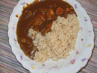 | 玄米食米農家のカレー | みずぶきのおひたし |