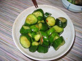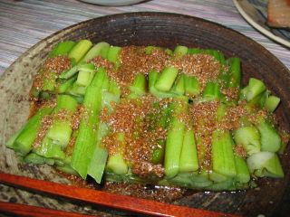 | 芋がらのえごま和え | きゅうりの漬物 |