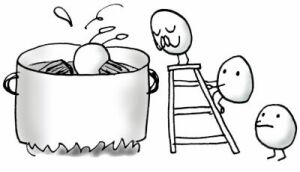 (4)ひと煮立ちしたら、ゆで玉子とココナツミルクを入れ、弱火でことこと煮込む。