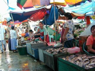 昨年は、植林をしていますが、今年は、まず苗作りです。まずは自生していたザボンのような大きな柑橘を食べ、種を取ります。また、マホガニーやイピルイピル(豆科の木)など見つけたら、種を確保しています。 育苗場の建築は、鈴木氏が書いているとおりですが、私も2日間、もっぱらカメラマンとして立ち会いました。 借りた敷地の草を払う。 斜面を重い木を2本も3本もかついで運ぶ。 堅い土に穴を掘り、杭を打つ。 豚や水牛が入り込まないように鉄条網を二重、三重に巻いては釘を打つ。 人が通れるように木のドアを立てる。 苗に強い日差しや強風が当たらないよう網のフードで囲いをつくる。 囲いの中に平らな面を作っていく。 雨が降ると流されるので、溝を掘る。 山の乾いた土と買ってきた有機たい肥を混ぜる。 プラスチックポットに土を入れる。種を入れる。 そして、水をかける。 山火事で、育苗場が燃えないよう、周囲に火入れをする。 2日間、第一号試験育苗場の完成です。 NGO・CORDEVのスタッフ、グレッグとジュリオス、それに、ジュリオスのお父さんはずっと参加し、あとは入れ替わり、立ち替わり人が参加します。 育苗場は、リトル・タジャンに最初に入植してきた人の敷地を借りています。しかも、井戸のすぐそばです。育苗場は水の確保が大事。水やりも大変です。育苗場の第一条件です。 2日目の夕方、土をプラスチックポッドに入れる作業をやっていると、カラバオ(水牛)に水を浴びさせようとやってきた少年が興味深そうに近づいてきて、じっと見ています。作業をしている大人達は知らんぷり。少年は、たまらず、鉄条網の内側に入り、やがて手伝いはじめました。 当の大人達は、全員が男性ということもあって、女性の話や冗談に花が咲きます。時々、グレッグが翻訳してくれましたが、きっと、あたりさわりのないものだけだったのでしょう。 日本でも、男性だけのとき、女性だけのとき、農作業や力作業をしていると、そういう話で盛り上がるものです。みんな疲れているようでしたが、笑いの力で最後まで楽しく作業を続けていました。 夜のひととき リトル・タジャンでの滞在は、ジュリオスの家でのホームスティです。以前にも紹介しましたが、ジュリオスのお父さんは、元鉱山労働者。入植後に、家族総出で半年以上かけてため池を手作業で掘り、それにより、カラバオの水遊び場、小さな田んぼ、ため池での魚の収穫、ため池周辺の木陰や果樹などを得て、自給することができるしくみを作っています。 もちろん、換金作物として飼料用のトウモロコシも作っていますが、まず、主食である米を自給し、魚などタンパク質も自分で確保して最低限の生活を築き、その上で子どもの学費などのために換金作物を育てたり、牛を飼っています。 この強い意志と現実の池や田んぼを見て、リトル・タジャンでのプロジェクトはスタートしました。 ジュリオス自身も、そのお父さんの元で、農業カレッジまで進み、そこで伴侶を得て、リトル・タジャンに戻り、CORDEVのスタッフとして各地を回りながらも、ふるさとであるリトル・タジャンを何とかしようと頑張っています。 陽が落ちてあたりが暗くなり、満天の星がまたたくころ、日本から持っていった日本酒を酌み交わしつつ、グレッグがジュリオスのお父さんの言葉を英訳してくれます。 「日本から友人が何度も訪ねてきてくれ、一緒に考え、働いてくれる。そして、長い夢だった木を植えて将来のために森をつくり、水の心配をなくすことが、少しずつ回りの理解を得て実現していく。このことに感謝したい」 一度、完全に伐採され、表土が流れるような山でため池を作り、安易に換金作物に走らず自給に軸を据えて生活を作るジュリオスの一家。その暮らしの姿勢を学ぶことができて、私もとても感謝しています。 ソラノの市場 今回は、帰路、時間を見つけてCORDEVの事務所があるソラノの市場を歩き回りました。ソラノは、北部ルソンの山岳部では一番の大きな市場だと言います。まさしく、巨大で迷路のような市場には、肉、魚、野菜、米、穀類、乾物、雑貨、衣料品、伝統薬などありとあらゆるものが揃っていました。もちろん、肉も魚も野菜も新鮮です。市場特有のにおいと活気に満ちています。人の姿も様々で、東南アジアの市場に必ずいる中国系の人、山岳の少数民族の人、ムスリムの衣装を着ている人など、雑多な人種、宗教、生活文化の人たちが、思い思いに買い物をしていました。特に大きな市が立つ日の午前中でしたから、市場の外の通りが延々とフリーマーケット状態になります。人と、トライシクル(自転車タクシー)、バイシクル(バイクタクシー)でぎっしりの路地の両側に、トマトだけを売る人、スイカを売る人、干し魚を売る人、野菜だけを売る人、手作りのお弁当やお菓子を売る人、鍋にぐつぐつと何かの生き物や根っこを煮て、その効能を叫んでいる人、ブリキの空き缶をリサイクルしてじょう